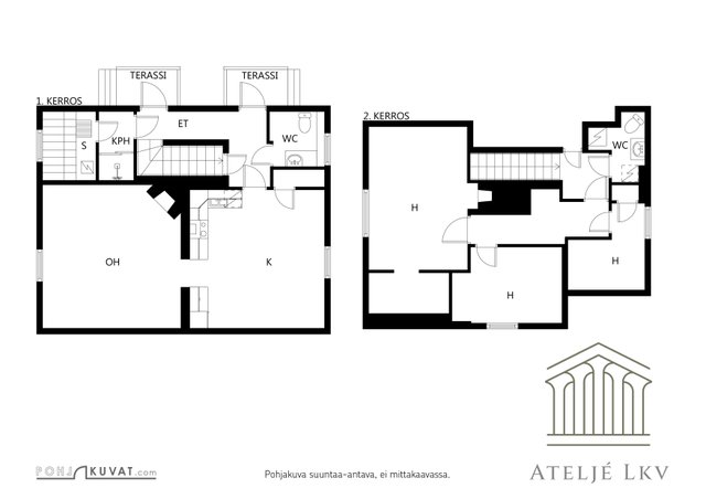 - Huoneistoala: yhteensä 100 m². (1. krs 54 m² + 2. krs 46 m²) Kerrosala: 106 m². Huoneistoalan mittaus tehdään standardin SFS 5139 ja RT 12-11055 ohjekortin mukaisesti. Huoneistoala lasketaan huoneistoa ympäröivien seinien sisäpintojen mukaan. Kantavien ja kiinteiden rakennusosien pinta-ala vähennetään mittauksista. Alle 1600 mm korkeita huoneen osia ei lasketa mukaan mittaukseen. Portaiden pinta-ala lasketaan mukaan siihen kerrokseen, johon portaat johtavat.