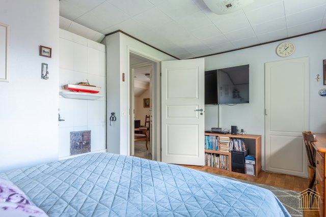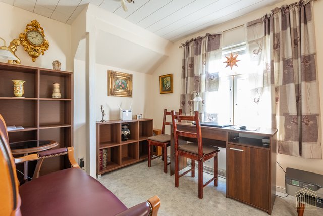Ullakolla on 3 huonetta, missä yhdessä on kaakeliuuni. Mansardikatto antaa ullakolle eniten käyttötilaa ja mahdollistaa kerroksen ilman ulkoseinien muurausta. Seisomakorkeutta ullakolla on huomattavasti normaalia enemmän kuin ns. perinne puutalossa. Taloon on tehty tarkistusmittaus, asuinneliöitä on 100 m² ja myös kuntotarkastus tehty syksyllä 2025.