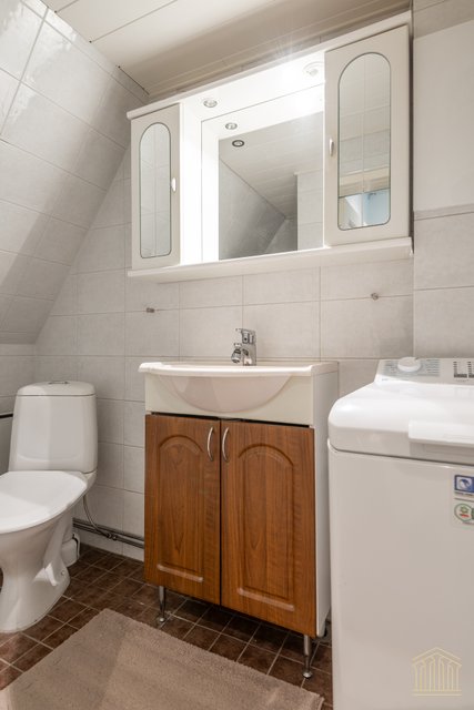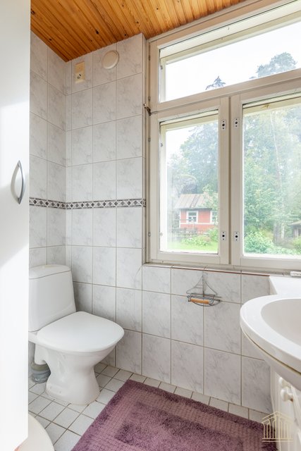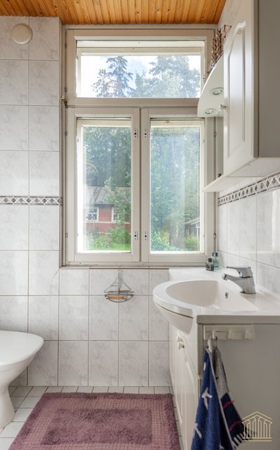- Alakerran wc:ssä on lattialämmitys ja patteri. Yläkerrassa patterilämmitys, ei lattialämmitystä. Yläkerran wc:ssä on paikka pesukoneelle ja integ. kattovalot. Ala- ja yläkerran wc:ssä on pesuallas, allaskaappi ja peilikaappi.
