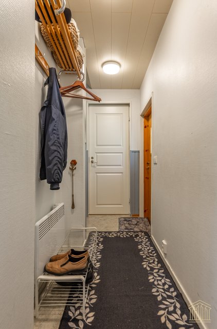 - Yläkerran huoneet: 1. huone: lattiassa laminaatti, seinät maalattu tapetti. 2. huone: lattiassa muovia, seinät maalattu tapetti. 3. huone: lattiassa parkettia, seinät maalattu tapetti. Suuremmassa huoneessa on kaakeliuunitakka.