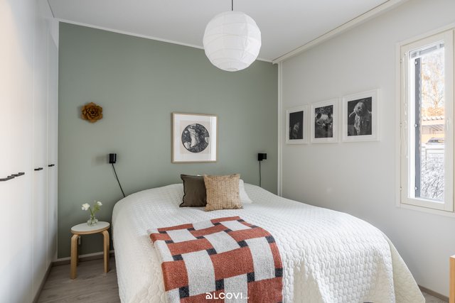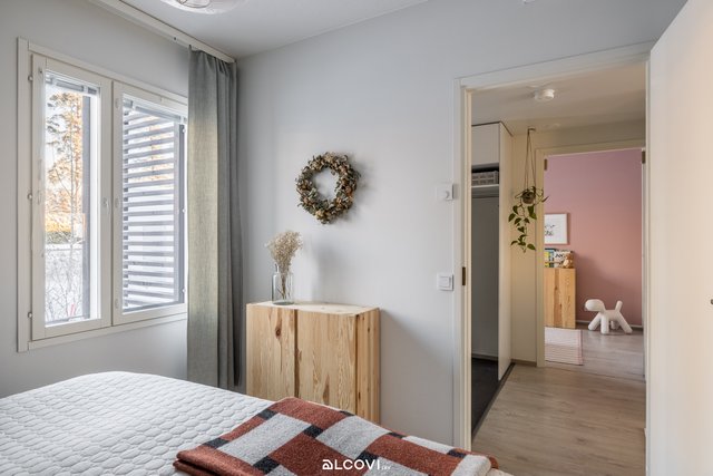- Makuuhuoneita on 3 kpl. Lattiat ovat laminaattia, seinät maalatut. Kahdessa makuuhuoneessa kiintokaapistoa. Lattialämmitys (vesikiertoinen).