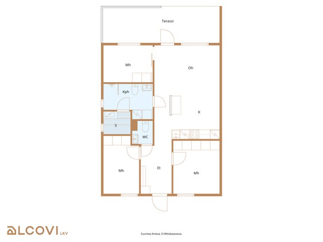 - Asuintilojen pinta-alaa ei ole tarkistusmitattu. Pinta-ala voi siis olla edellä mainittua pienempi tai suurempi.
