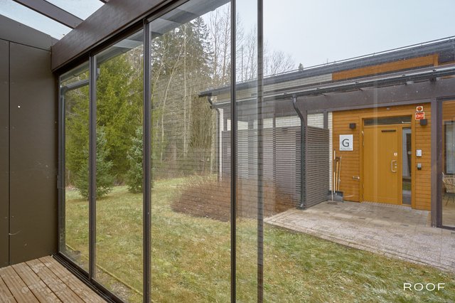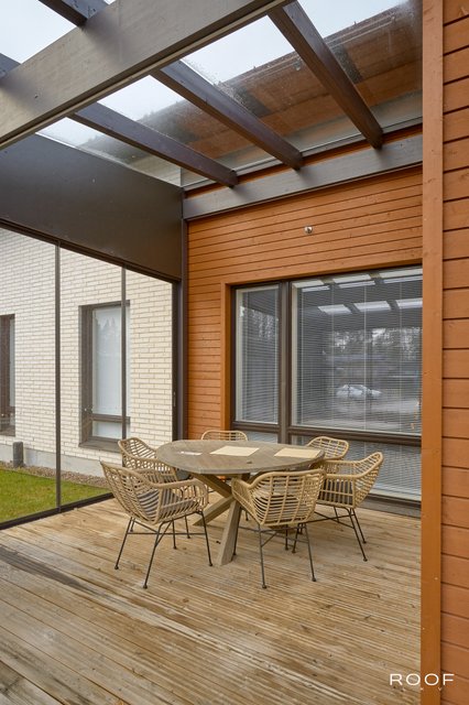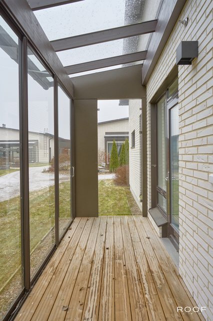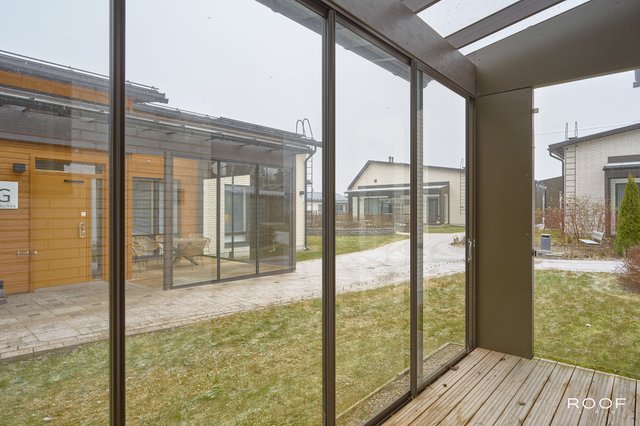 Oma lasitettu terassi tarjoaa mahdollisuuden nauttia ulkoilmasta ja rentoutua.