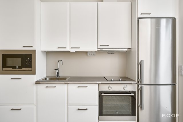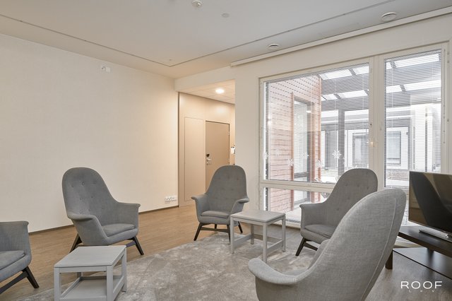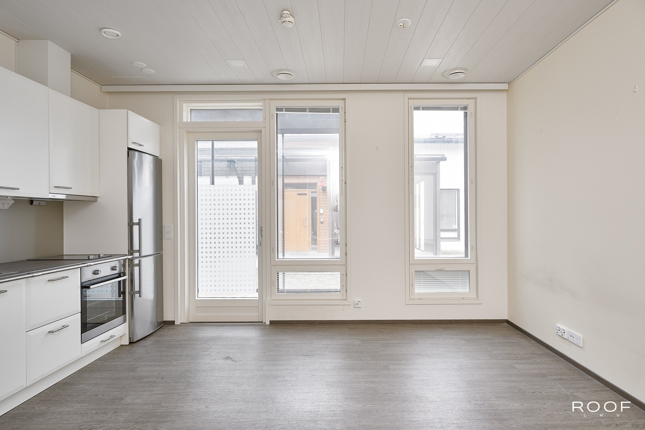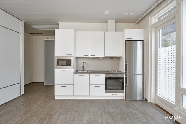 Asunnon olohuone-keittiöyhdistelmä on valoisa ja viihtyisä. Keittiö on varustettu nykyaikaisilla laitteilla, kuten induktioliedellä ja erillisellä uunilla. Kylpyhuoneessa on tyylikkäät laatat, suihku ja pesukoneliitäntä.