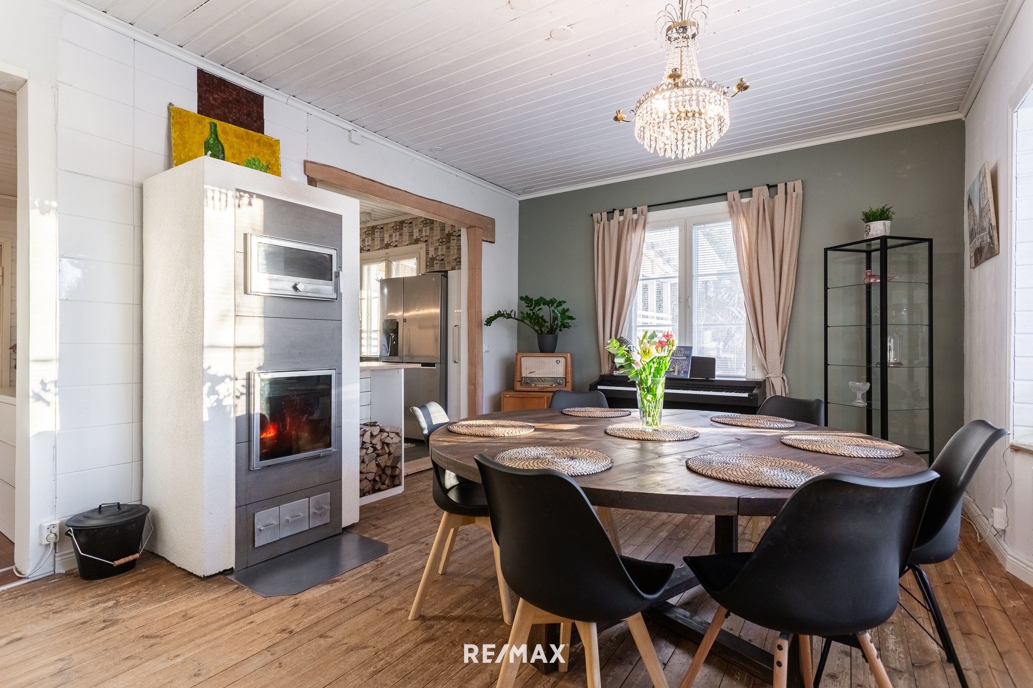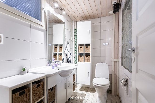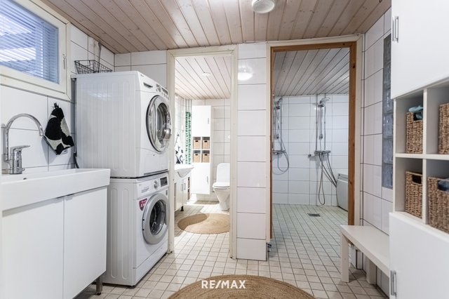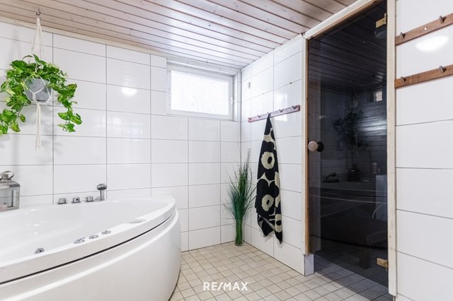 Tilava 180 m²:n koti tarjoaa runsaasti luonnonvaloa ja avaruutta. Kolme makuuhuonetta, tilava olohuone sekä tyylikäs keittiö ja keittiön jatkeena ruokasali, missä lämpöä tuomassa varaava takka. Kolme wc:tä ja kodinhoitohuone lisäävät käytännöllisyyttä. Puulla lämpiävä sauna tarjoaa löylyt ja saunasta pääsee pulahtamaan porealtaaseen.