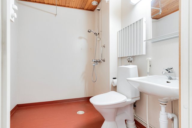 - WC-istuin, suihku, pesukoneliitäntä, ja peili