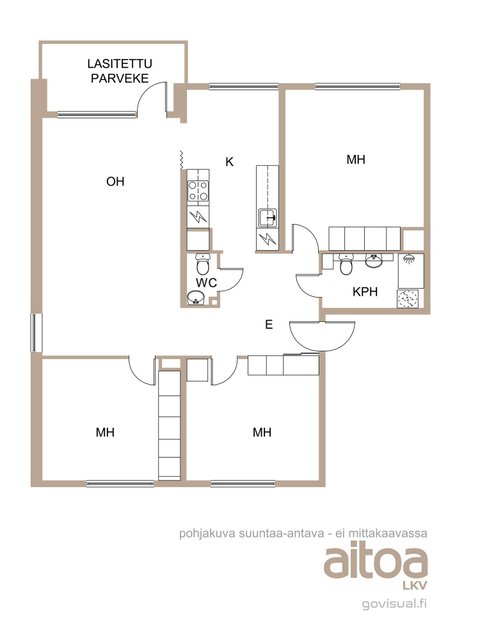 - Käynti lasitetulle parvekkeelle.