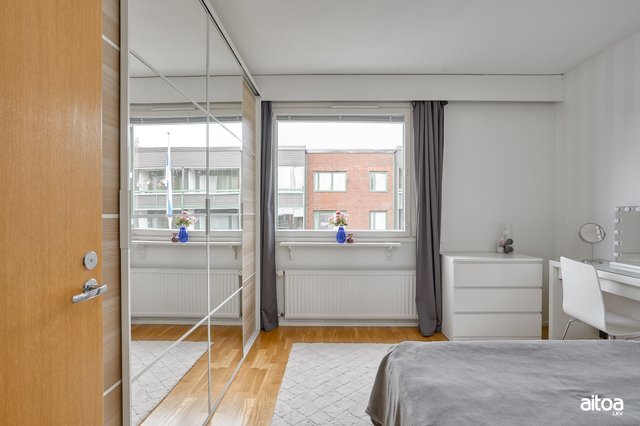 Tämä ylimmän, eli kolmannen kerroksen 92,5 m² valoisa koti sopii erityisesti sinulle, joka arvostat portaiden tuomaa hyötyliikuntaa ja taloyhtiön uima-allasta. Kerrostalon päätyyn sijoittuvana huoneistosta aukeaa ikkunat kolmeen ilmansuuntaan. Arjen pieniä ylellisyyksiä ovat vuonna 2022 remontoitu keittiö, lännen suuntainen lasitettu parveke ja kaksi wc-istuinta, joista toinen erillisessä wc:ssä, toinen kylpyhuoneen yhteydessä.
