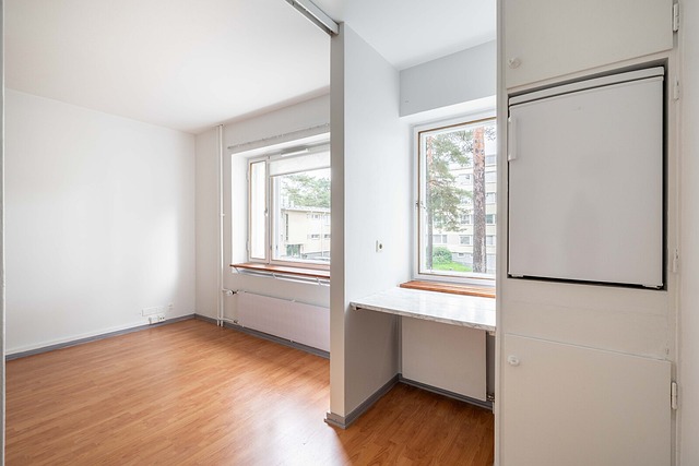 Tämän pienen kodin neliöt on käytetty tehokkaasti ja hukkaneliöitä ei ole. Kylpyhuone on remontoitu perinteisen putkiremontin yhteydessä vuonna 2009. Tässä asunnossa valo tulvii ikkunoista ja niistä avautuu vehreät näkymät avaralle sisäpihalle. Taloyhtiö sijaitsee omalla tontilla.