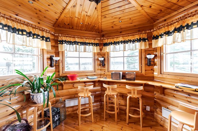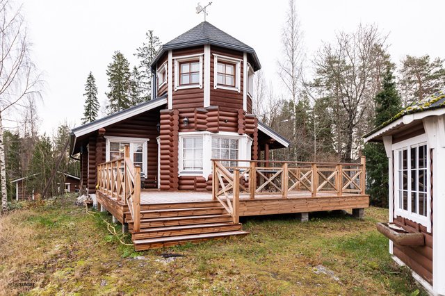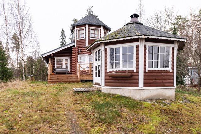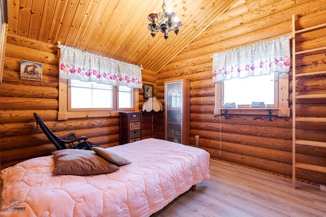 - Lattia laminaattia, seinät hirttä, kaksi ikkunaa, käynti vaatehuoneeseen. "tornihuonetta", mahdollista käyttää makuuhuoneena tai esim työhuoneena.