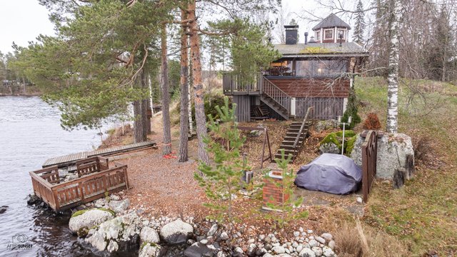 Asuinrakennus, joka on rakennettu vuonna 2002, on kaikkea muuta kuin tavanomainen. Se on 230mm pyöröhirttä, jossa keskellä katseenvangitsijana Tulikiven vuolukivitakka-leivinuuni yhdistelmä tilanjakajana tuvan ja keittiön välissä. Keittiön jatkeena olevasta ruokailutilasta näkymät ovat pelkästään järvelle ja tilasta on käynti noin 40m2 tilavalle terassitilalle. Kesällä aamupalan nauttimisen tila on taatusti ainutlaatuinen. Myös tuvasta/olohuoneesta ikkunat ovat kaikki järven suuntaan.