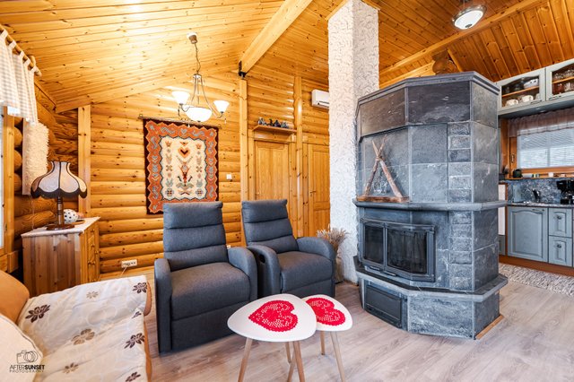 Toisella puolella takkatuli ja toisella puolella järvinäkymät rauhoittavat kenen tahansa mielen.