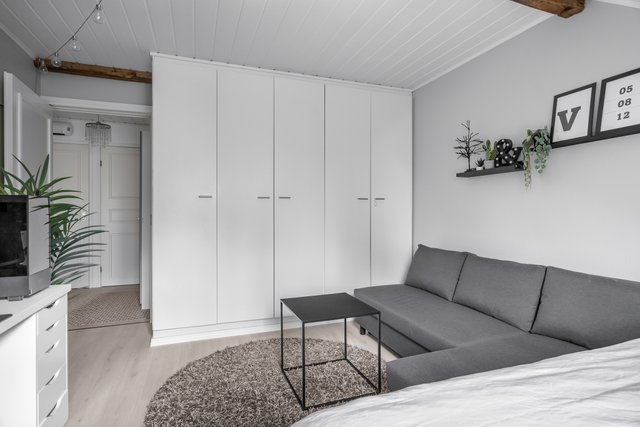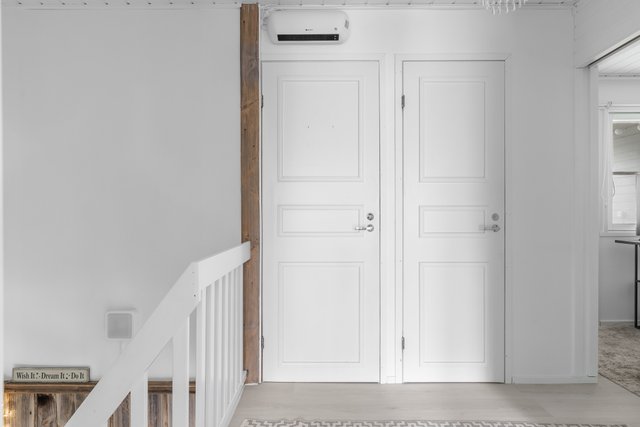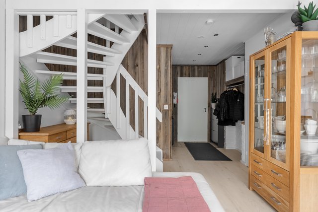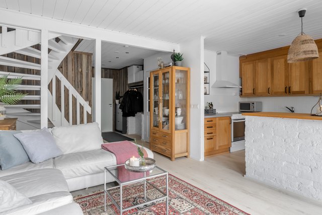 Asunnon tilat on suunniteltu tukemaan sujuvaa arkea. Erillinen kodinhoitohuone tarjoaa käytännöllisyyttä + tilaa pyykinpesuun ja sieltä löytyy lisäksi kätevä pöytätaso sekä kaapistoja. Tällainen ratkaisu on harvinaista herkkua rivitaloasunnossa. Myös yläkerran toinen kylpyhuone ja wc on tärkeä lisä etenkin kiireisinä aamuina.