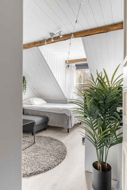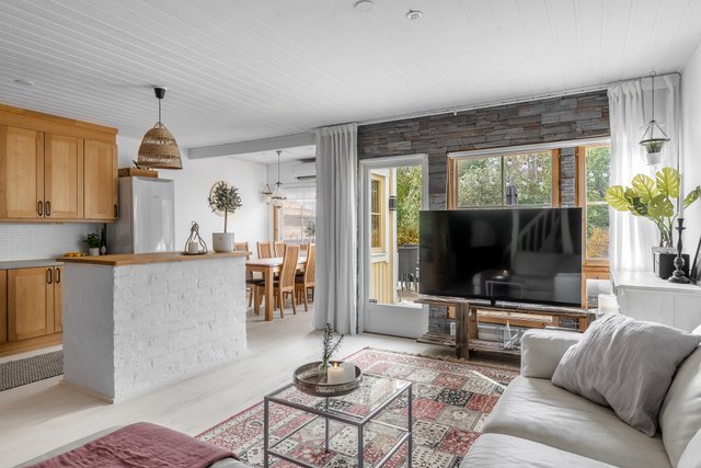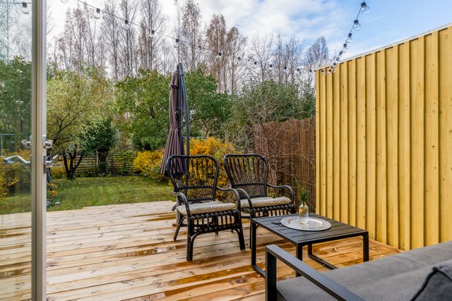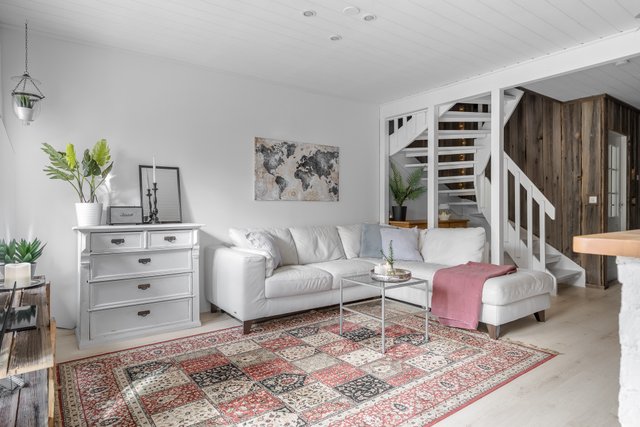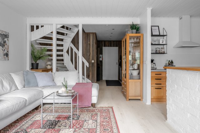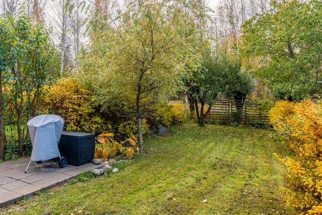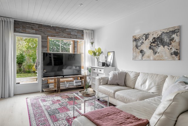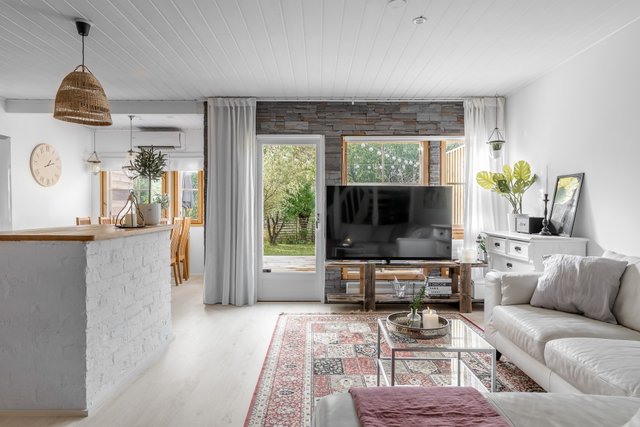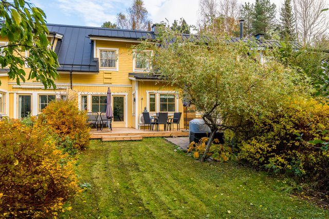 Autolle on oma katospaikka, ja pihalla on lisäpaikkoja. Tämä koti yhdistää tyylin, toimivuuden ja viihtyisyyden.