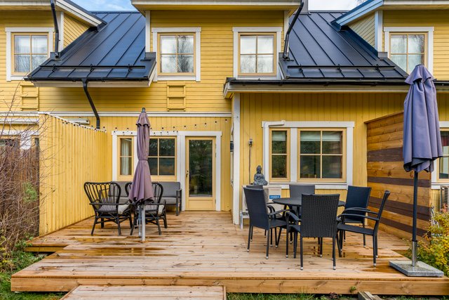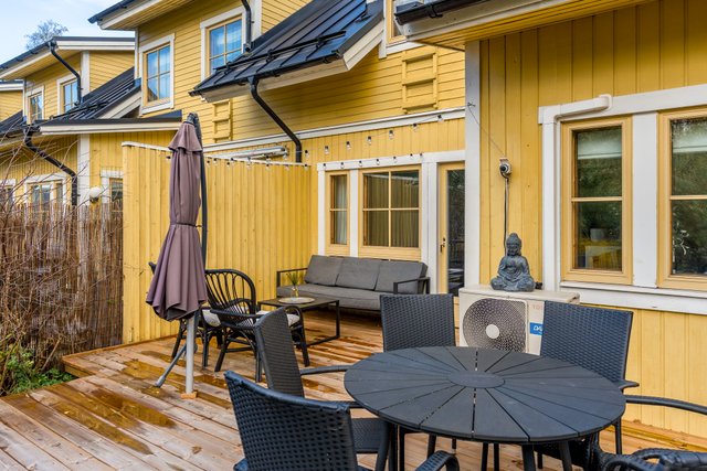 Taloyhtiöllä suuri tontti, etupihalla leikkialue sekä nurmikkoa. Asuntojen takapihat ovat myös tilavat, ilmansuunta on etelä joten takapiha on varsin aurinkoinen ja valoisa myös talvisin. Asunnon terassi on uusittu 2025.