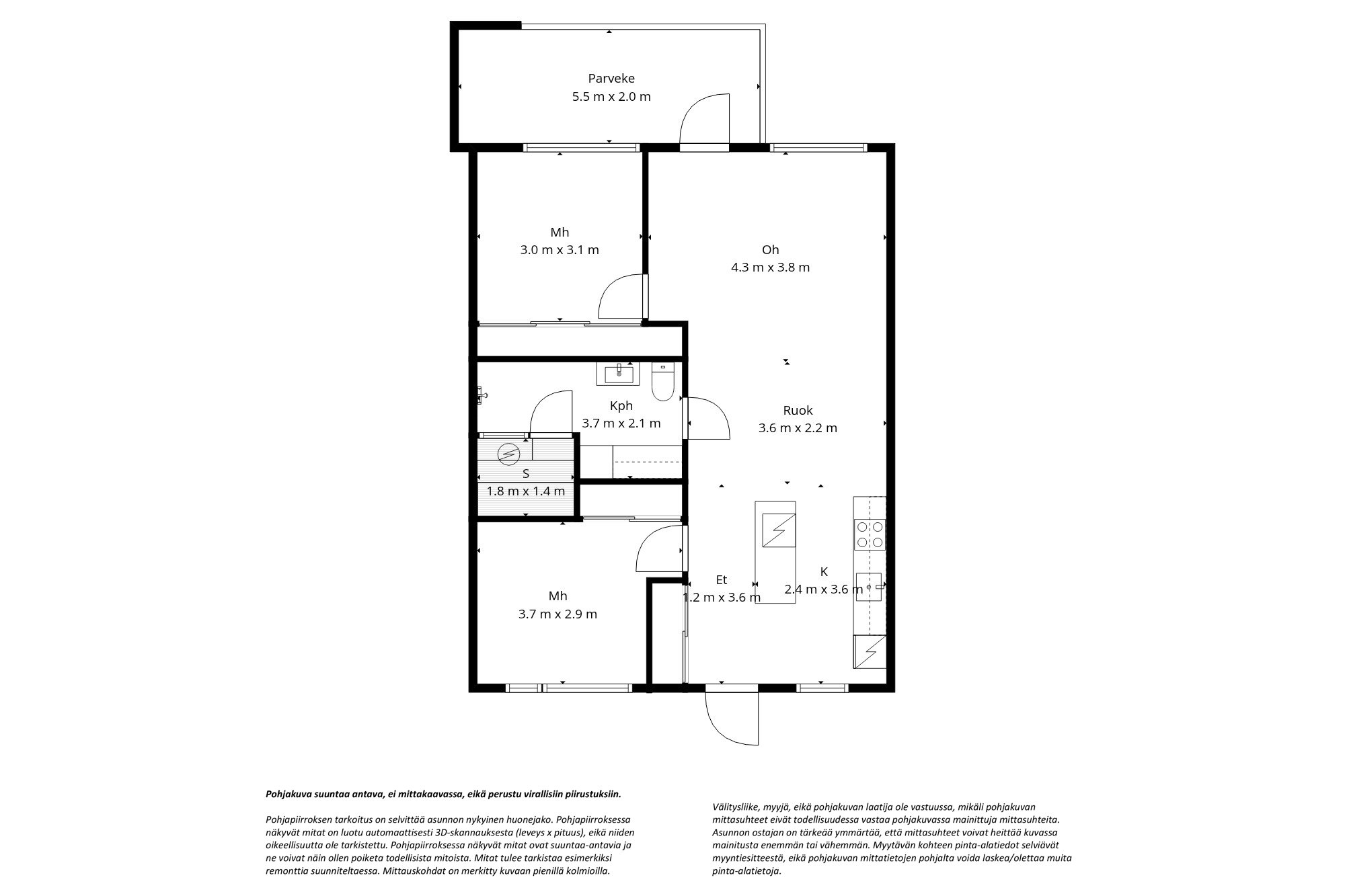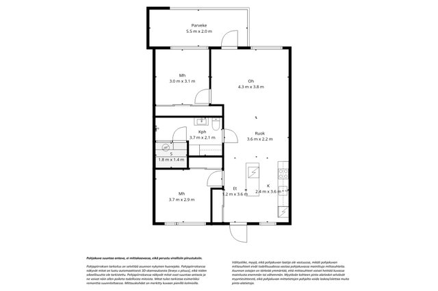 3h + k + s + parveke + lämmin varasto 5m2 + autopaikka