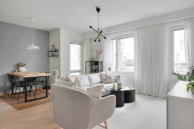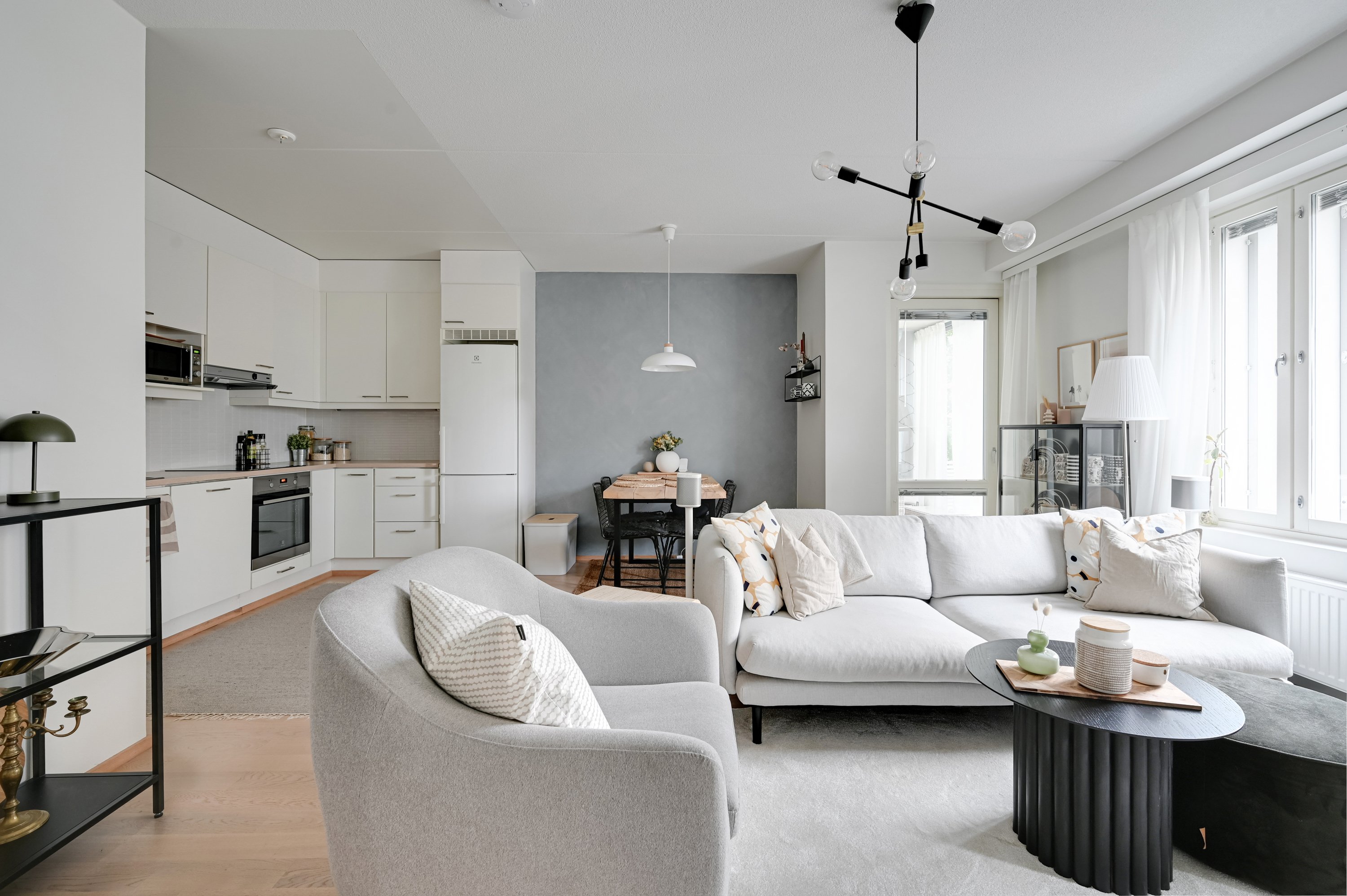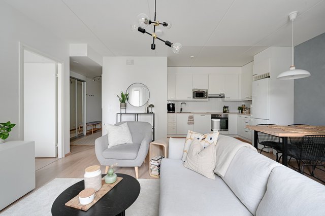 Valoisa ja avara kaksio Pakkalan suositulla alueella Vantaalla odottaa uusia asukkaita. Vuonna 2015 valmistunut, 56,5 neliön kokoinen koti tarjoaa modernia asumismukavuutta ja poikkeuksellisen tilan tuntua. Kodin sydän on valoisasta olohuoneesta, ruokailutilasta ja avokeittiöstä muodostuva yhtenäinen tila, jossa on helppo viihtyä niin arjessa kuin juhlassakin. Suuret ikkunat tuovat runsaasti luonnonvaloa, ja vaaleat pintamateriaalit korostavat kodin avaruutta.