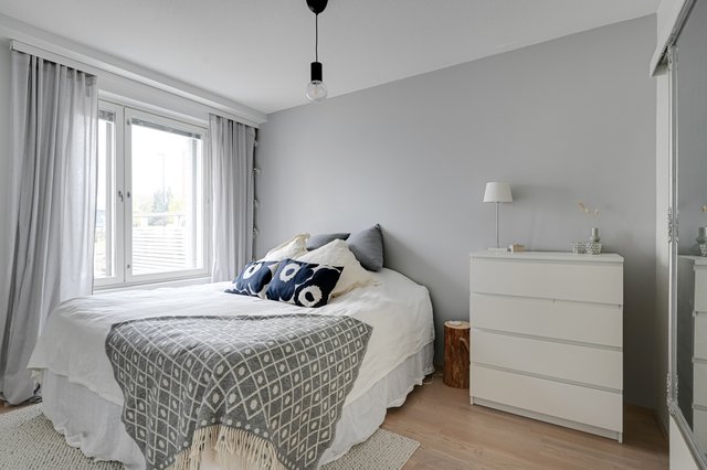 Makuuhuoneen yhteydessä on tilava vaatehuone, joka tarjoaa runsaasti säilytystilaa ja tekee elämisestä sujuvaa. Eteisessä on lisäksi käytännöllinen liukuovikaapisto, joka pitää tavarat järjestyksessä ja tilan selkeänä.