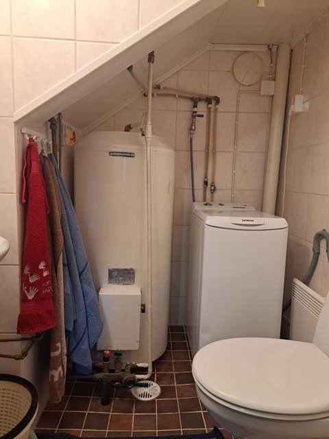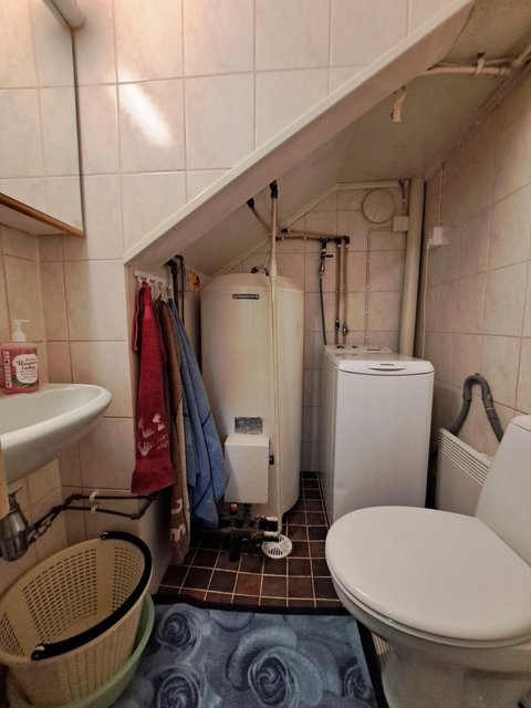 Talo lämpiää sähköllä, puulla ja ilmalämpöpumpulla, mikä antaa asukkaille mahdollisuuden valita itselleen sopivin lämmitystapa. Kylpyhuone ja wc ovat erillisessä rakennuksessa, mikä on otettava huomioon talon remonttitarpeita suunniteltaessa.