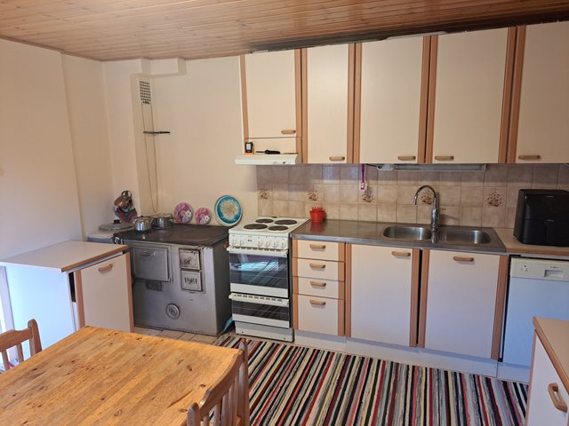 - Jääkaappi, astianpesukone, liesituuletin, liesi, ja puuhella