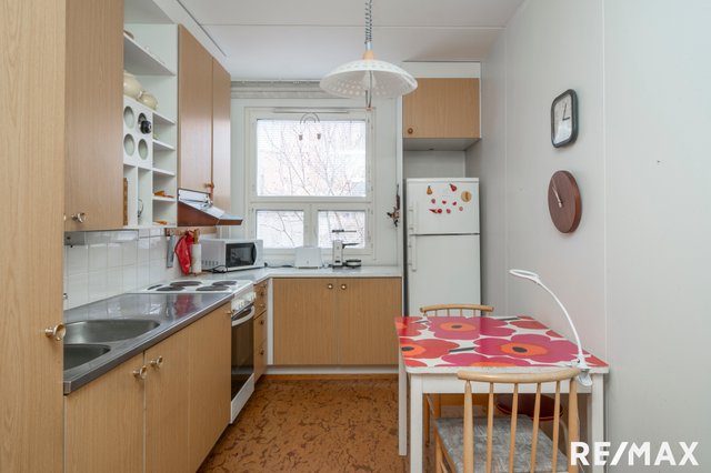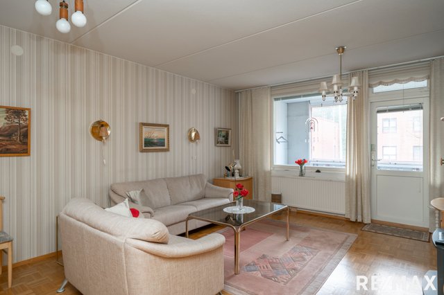 Asunnossa on selkeä ja toimiva pohja. Olohuoneesta käynti, rauhallisen ja avaran sisäpihan suuntaan, lasitetulle parvekkeelle. Kylpyhuone on uusittu vuonna 2018, muilta osin huoneisto on alkuperäisessä kunnossa.