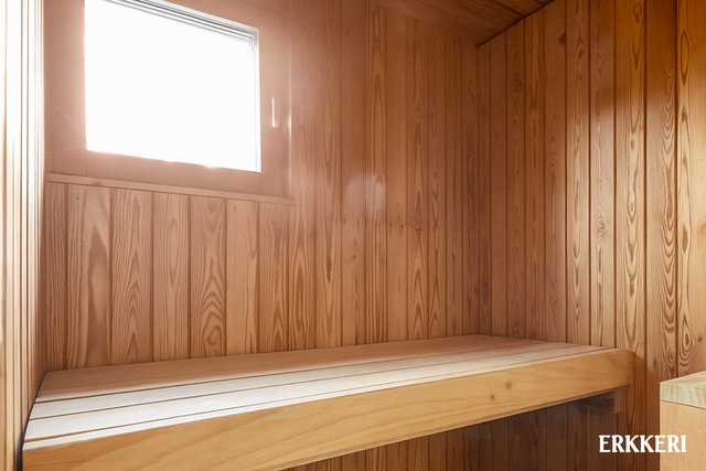 - Siisti ikkunallinen kolmen hengen sauna sähkökiukaalla.