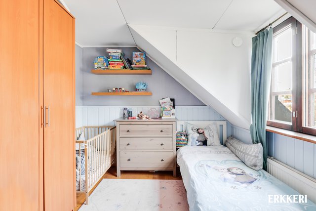 - Yläkerrassa kaksi reilun kokousta makuuhuonetta (kaapit kuuluu), vaatehuone ja parveke.