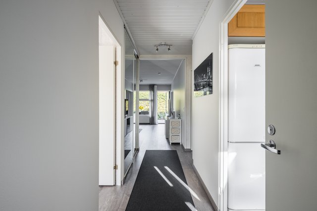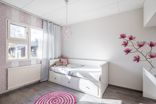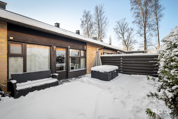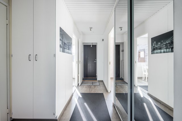 Asunnon toimivan pohjaratkaisun myötä makuuhuoneet ovat omassa rauhassaan, erillään kodin yhteisistä tiloista ja vaaleat sävyt luovat kodikkaan ja rauhallisen tunnelman, jossa on helppo viihtyä. Olohuoneesta on käynti suojaisalle terassipihalle, joka on kesällä oiva lisätila toimien olohuoneen jatkeena tarjoten täydellisen paikan rentoutumiseen ja grillailuun.