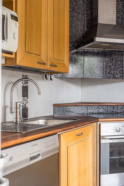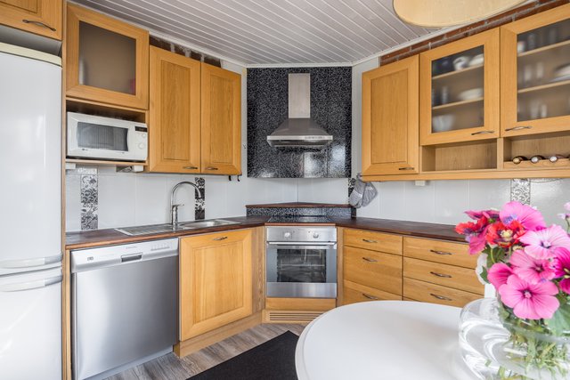 - Keittiössä hyvin kaappi- ja laskutilaa sekä paikka ruokapöydälle.