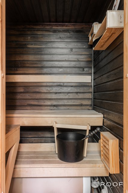 - VARUSTUS: Puulauteet ja sähkökiuas. SEINÄT: Puupaneeli LATTIA: Laatta