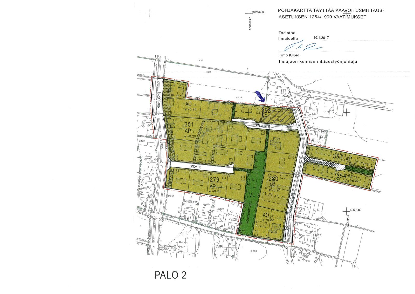 - Ilmajoen kunta 06-4191 111. Kaavamerkintä AP II. e = 0,20.