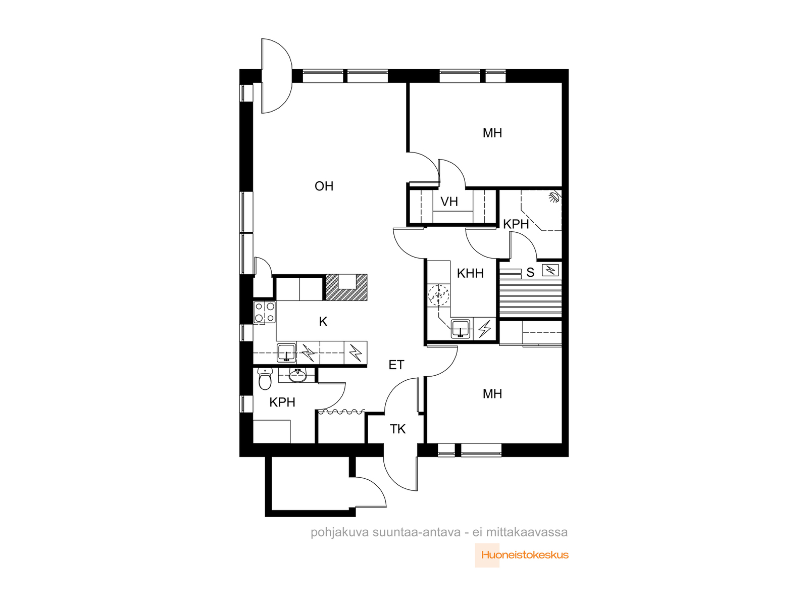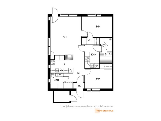 3 h, k, kh, s, khh, wc, var, piha (Yj. 3 h+k+sauna-osasto+kodinh.huone)