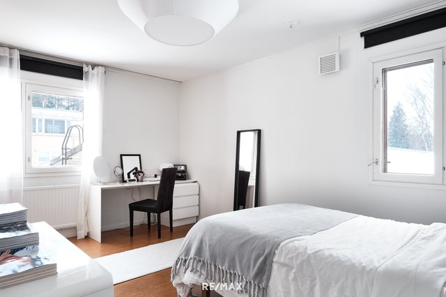 - Makuuhuoneiden seinät: Maalattu levyseinä Makuuhuoneiden lattia: Koivuparketti Makuuhuoneiden säilytystilat: Kaapistot Eteisen säilytystila: Kaapistot, laatikosto