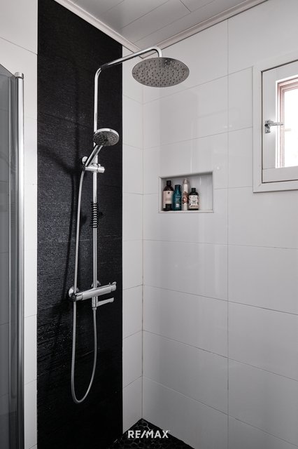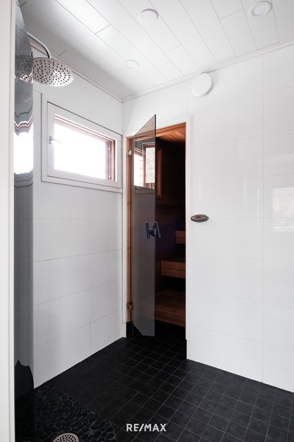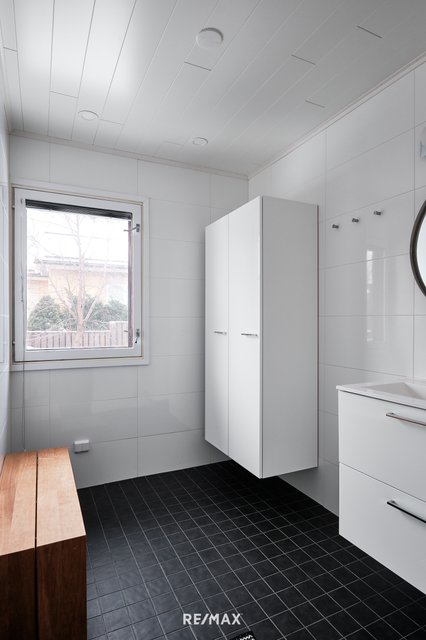 - Seinät: Kaakeli Lattia: Kaakeli, lattialämmitys Varustelu: Kaapisto, pesuallas, allaskaappi, suihku, lasinen suihkuseinä