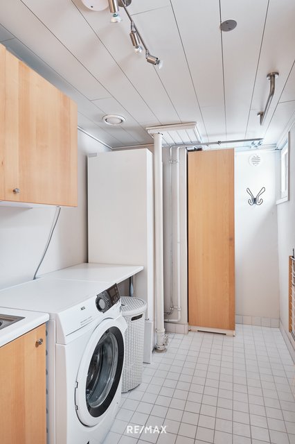 - Lämminvesivaraaja, pesukoneliitäntä. Kodinhoitohuoneeseen kätevästi oma sisäänkäynti suoraan ulkoa.