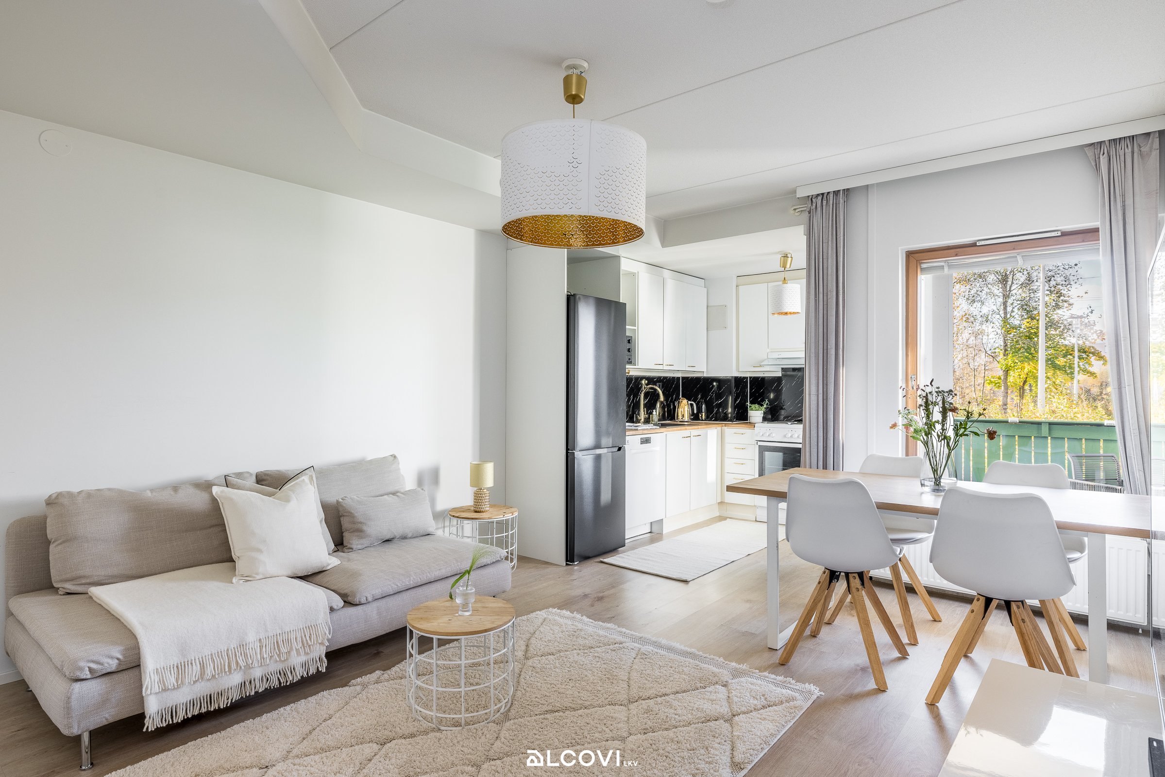 Onko hakusessa uusi koti, tai toimiva sijoituskohde? Tämä kompakti, mutta erittäin toimiva kaksio tarjoaa siistit pinnat, nykyaikaisen varustelun, hyvät säilytystilat sekä suojaisan terassipihan. Sijainti on mainio – keskeinen mutta rauhallinen.