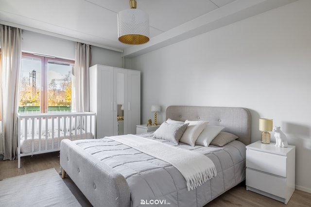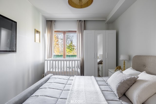 - Makuuhuoneen lattia on laminaattia, seinät maalatut. Makuuhuoneen yhteydessä tilava vaatehuone.