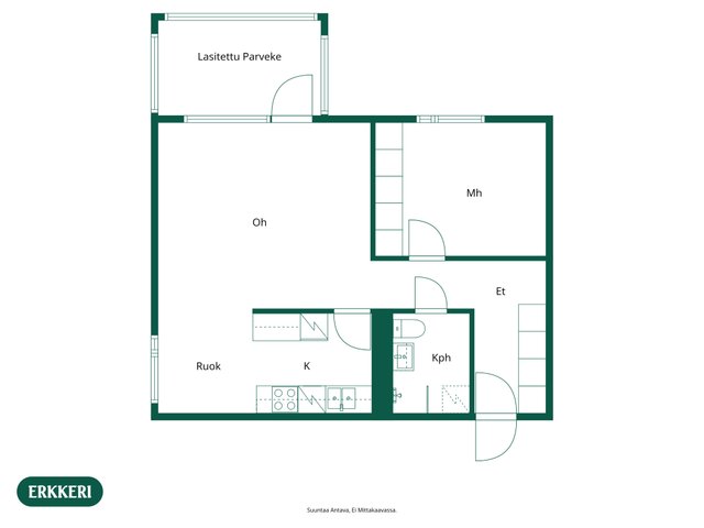 Reilunkokoinen lasitettu parveke lisää asumismukavuutta ja tarjoaa rauhallisen lisätilan arkeen.