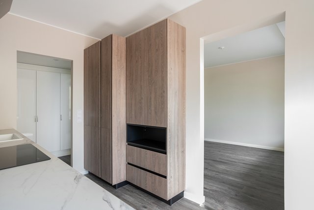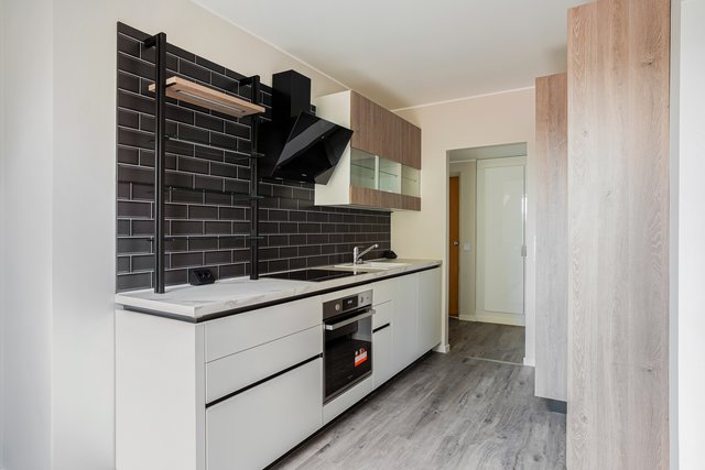 - Jääkaappipakastin, liesituuletin, astianpesukone, aamiaiskaappi, ja liesi