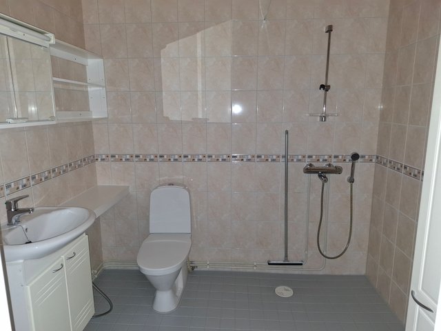 - WC-istuin, suihku, pesukoneliitäntä, peilikaappi, pesuallas, allaskaappi, bidee-suihku, ja pyykkikaappi