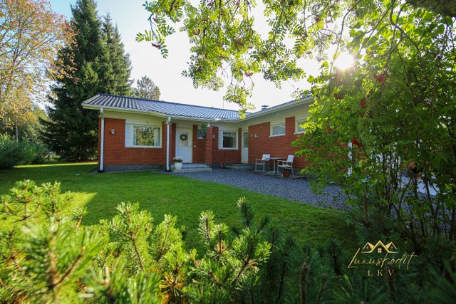 - Kaunis, hoidettu puutarhamainen tontti jota ympäröi pensasaita.