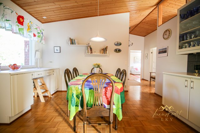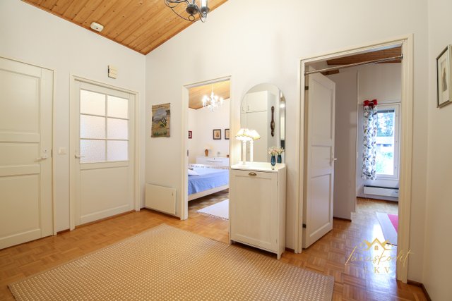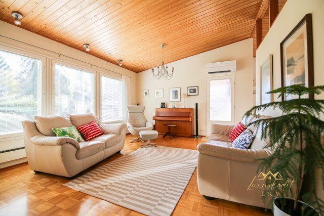 Yksikerroksinen talo ja sen 117 neliömetrin huoneistoala tarjoavat tilavat huoneet ja toimivan pohjaratkaisun. Talon yhteydessä on lämmin autotalli ja varasto. Olemassa olleet salaojat uusittu vuonna 2025, vesikaton pinnoitus tehty 2024 sekä kodinhoitohuone, pesutila ja sauna remontoitu 2021.