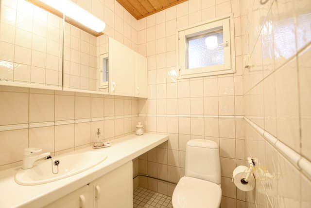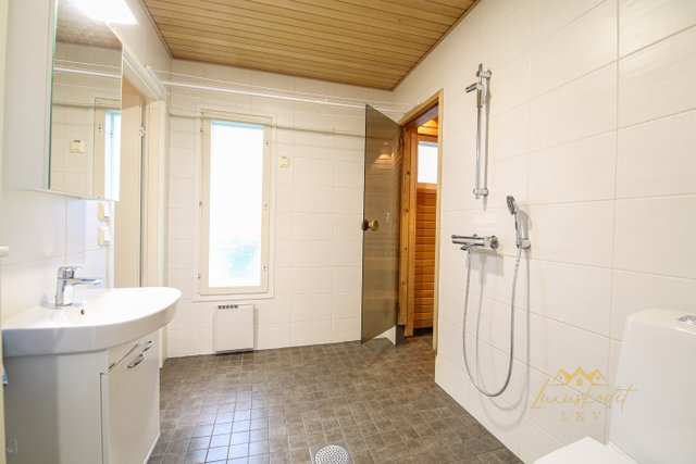 - WC-istuin, suihku, lattialämmitys, peilikaappi, pesuallas, ja allaskaappi