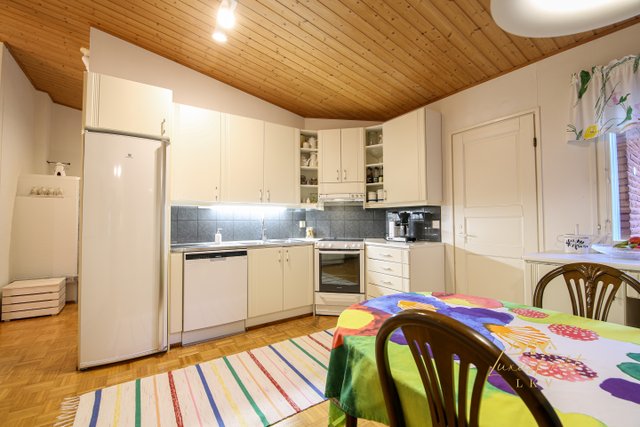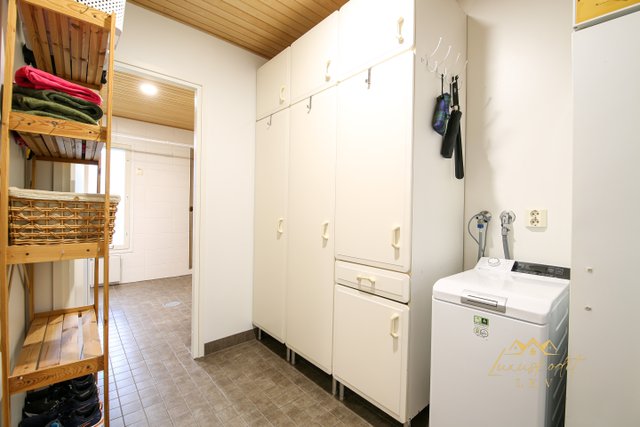 - Pesukone (Ei kuulu kauppaan), pesukoneliitäntä, kuivauskaappi (Ei kuulu kauppaan), lattialämmitys, ja kiintokaapit 3 kpl