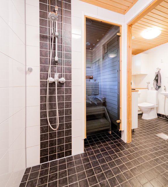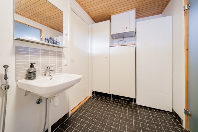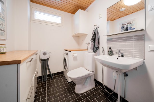- Saunaosastolle mennessä on kodinhoitotila/wc. Mukavasti kaappitilaa ja laskutasoa.
