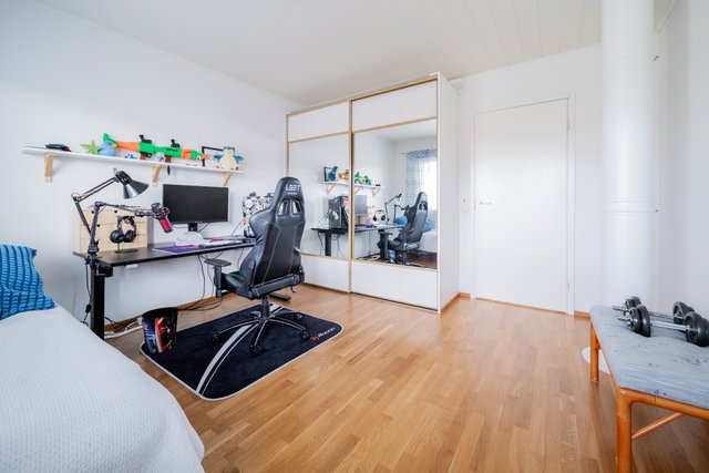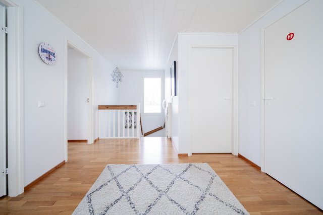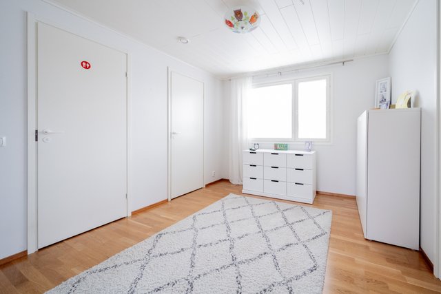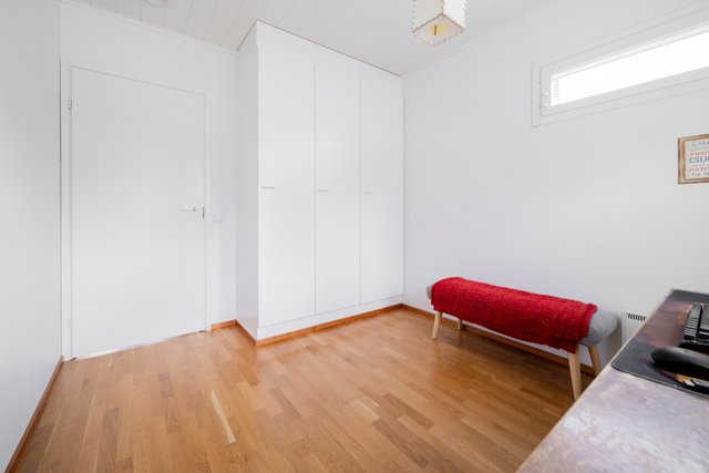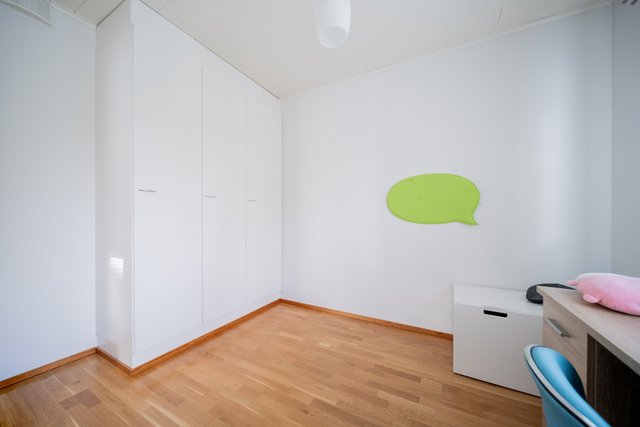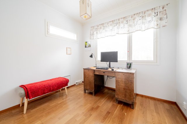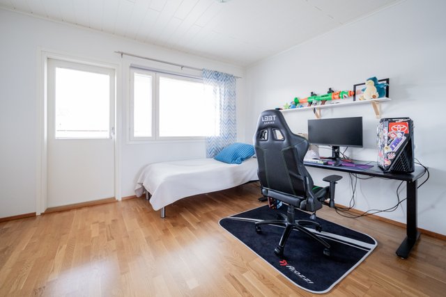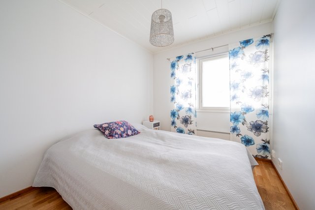 - Alakerrassa on yksi makuuhuone ja yläkerrassa kolme mukavan kokoista makuuhuonetta.