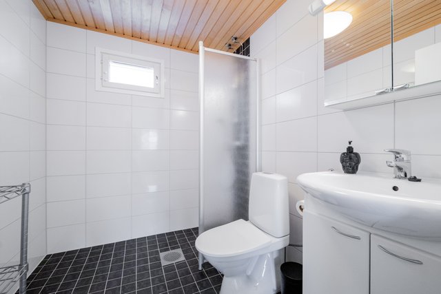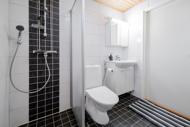 - Alakerran wc-istuin on kodinhoitotilassa. Yläkerrassa erillinen wc, jonka yhteydessä myös suihku.