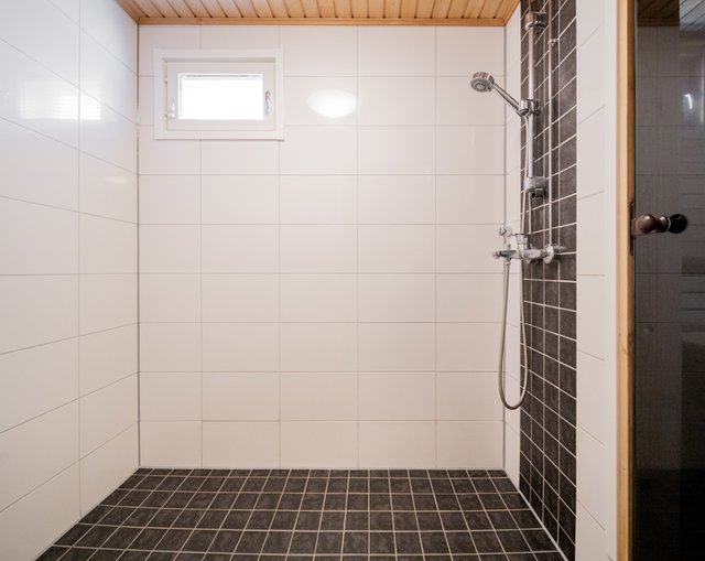 - Siistit kaakeloinnit, hillitty valkeaharmaa väritys. Ikkuna ulos.