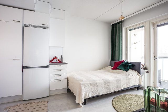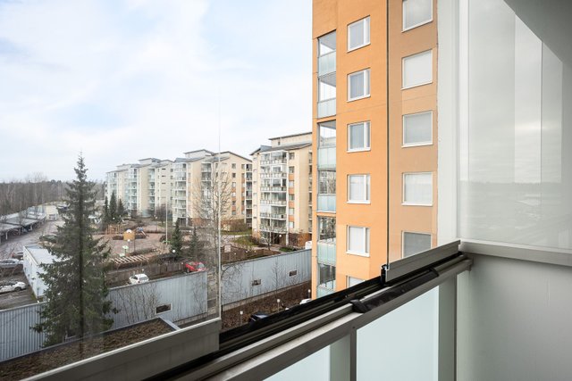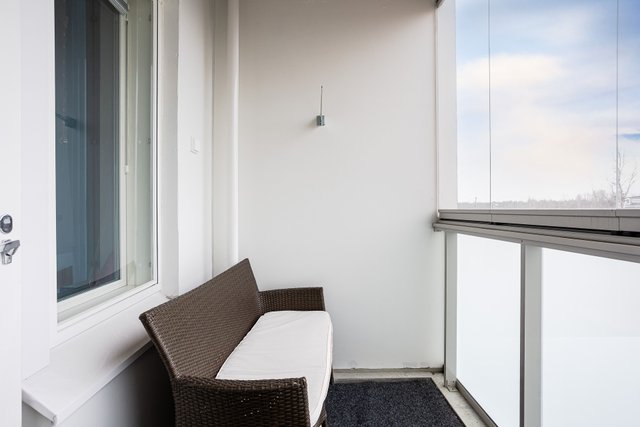 Tähän käytännölliseen 5. kerroksen huoneistoon on saatu hyvällä suunnittelulla mahtumaan kaikki tarpeellinen ja lasitetulta parvekkeelta löytyy mukavasti lisätilaa oleskeluun. Sijainti on erinomainen, vain noin 1,5km juna-asemalta ja lähikauppa parin sadan metrin päässä. Vierestä lähtee myös pyörätiet ja autolla nopea yhteys Lahden moottoritielle.