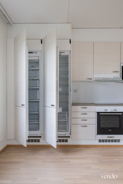 - Jääkaappi (Kalustepeitteinen), erillinen pakastin (Kalustepeitteinen), astianpesukone (Kalustepeitteinen), erillisuuni, uuni, liesituuletin, ja mikroaaltouuni (Integroitu)